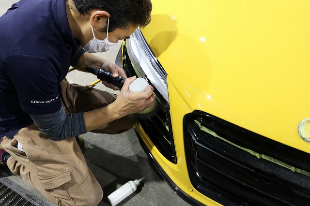 新車 トヨタ MAPJ10 ヤリスクロスへの施工工程。 徳島県三好市のカーコーティング専門店SOUPが、SystemX Crystal SS セラミックコーティング専用ガスプライマーを丁寧に施工中。 コーティングの密着性・耐久性を大幅に向上させる重要なプロ仕様の下地工程です。